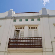 Straight and flat with twin facade openings or next to each other. Pure and geometric shapes. Flat roofs. Emphasis on verticality with straight geometric profiles. Finishing walls, pilasters, facade mouldings and fan-shaped or pyramid-shaped serrated platibandas with strong/striking colours. Elements or decorative panels in stucco composed of round parallel profiles to accentuate facade openings, floors, platibandas and other elements in the facade.Decorative stucco elements, Sgraffito, mosaic, glazed tiles with abstract or floral motifs. Balcony railings made of wrought iron with straight geometric motifs or made of concrete with shadow effects. Decoration with symbols of progress. Sometimes with corners in the form of an opaque cylinder (influence of modernism). Sometimes buildings from previous periods have Art Deco influences in the platibandas or the frames of the facade openings. Sometimes even with Art Nouveau influences (1900-1920) with sometimes rounded corners.